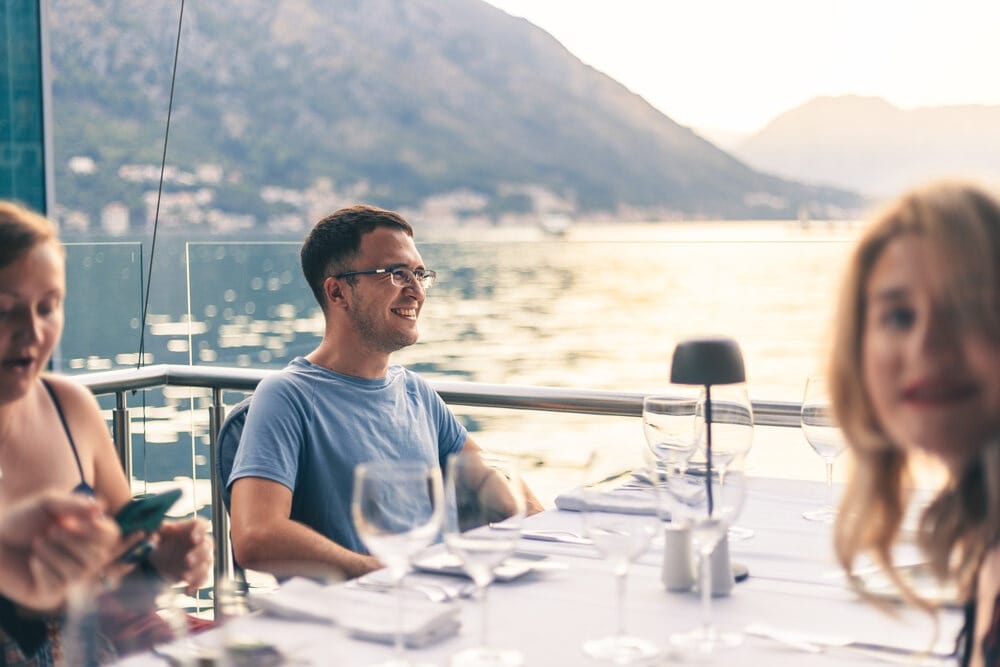 Exploring Kotor Bay by boat is pure magic—gliding across calm blue waters, surrounded by dramatic mountains and tiny island churches that seem to rise straight out of the sea. Out on the water, the pace slows down, giving everyone a chance to relax, soak up the view, and just enjoy the moment together.